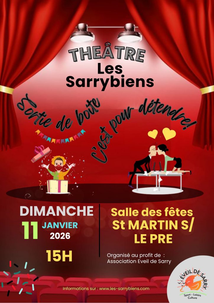 Théâtre « Les Sarrybiens » samedi 8 novembre 2025 – 15h et 20h30 à la salle des fêtes de Sarry